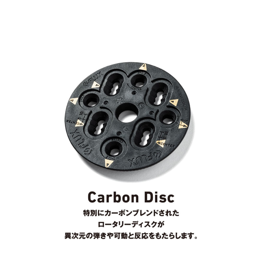 板のポテンシャルを引き出す操作性を重視しています。とくに板のセンターをしならせ、反発をつかいやすい様に、ディスクプレートは強度の高いカーボン配合ディスクを採用しています。